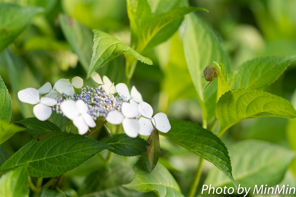 でんでん虫とアジサイ^^ 72cmまで寄れます!寄れます! ゾナーぞな^^