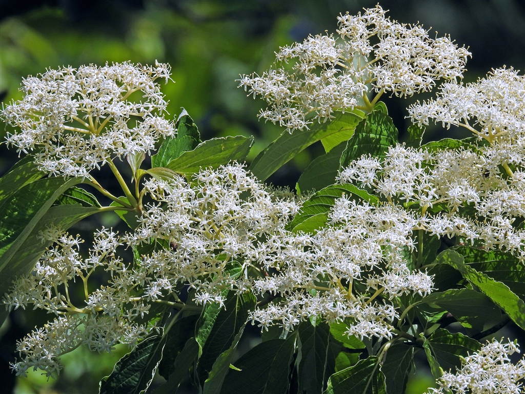 クマノミズキ(熊野水木) ミズキ同様に枝は斜上し枝先に葉の上に高く散房花序を出す