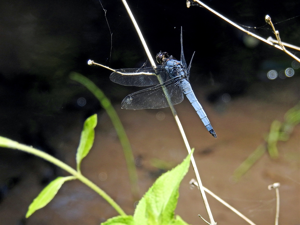 小さな野池でシオカラトンボの♂が羽休め