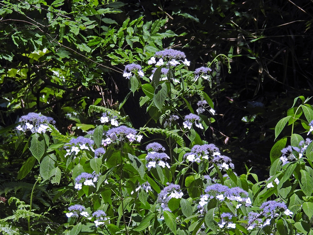 藪漕ぎして勝手に名付けたアジサイ谷に分け入った。大勢のヤマアジサイが迎えてくれた