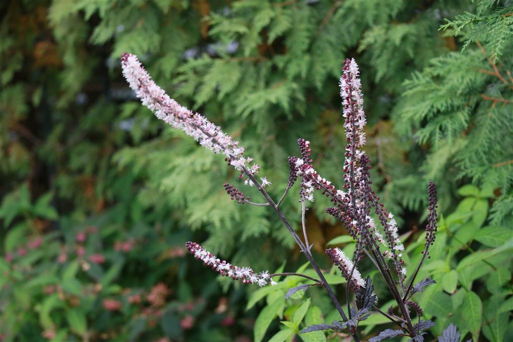 キミキフガ(サラシナショウマ)の花。甘い香りがするので、蜂もハエも寄ってきます。