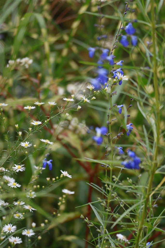 クジャクアスター(白)とコバルトセージ(青)