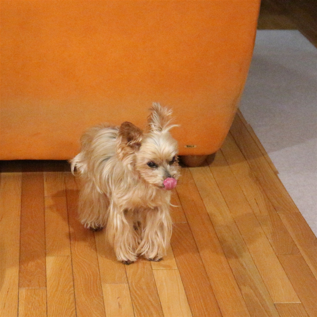 食後は、ソファーの周りを、左右一周ずつして口の周りを拭きます