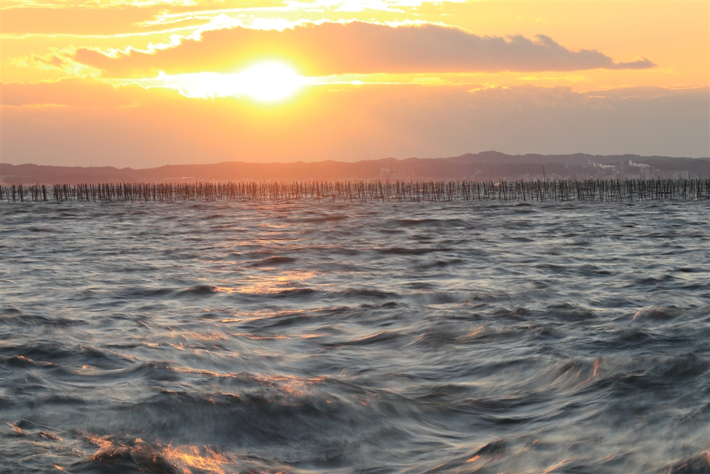 減光フィルターで鏡面を狙いましたが、波荒すぎで生き物のようです。