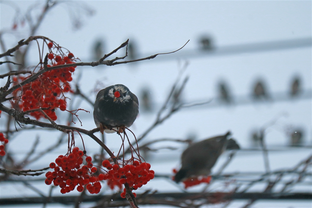 実をついばんで、飲み込むまで早いです。