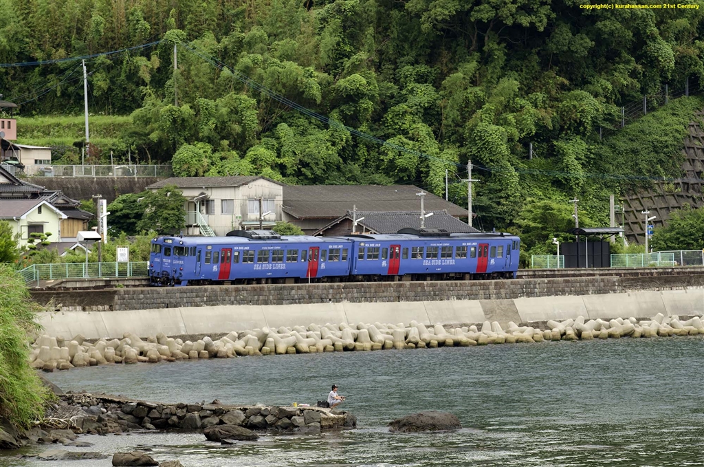 オッチャンが、フグを釣りおり夕焼け小焼け。