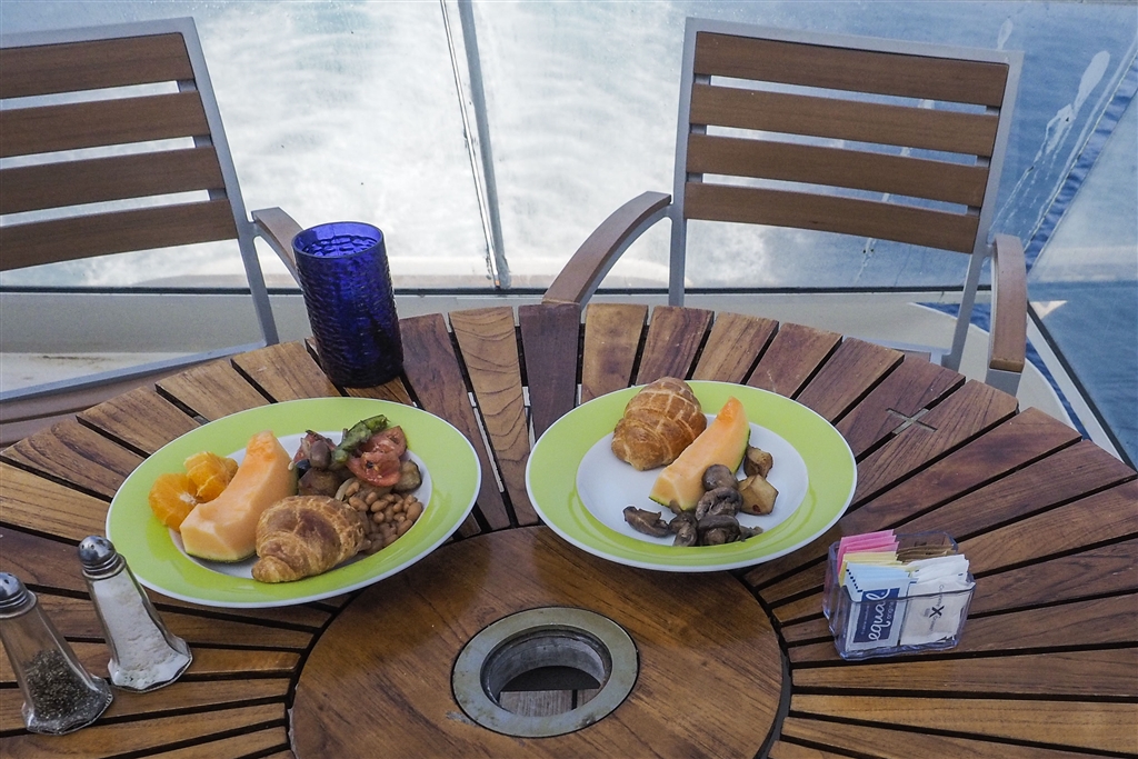 朝食、船尾のデッキでどうぞ。