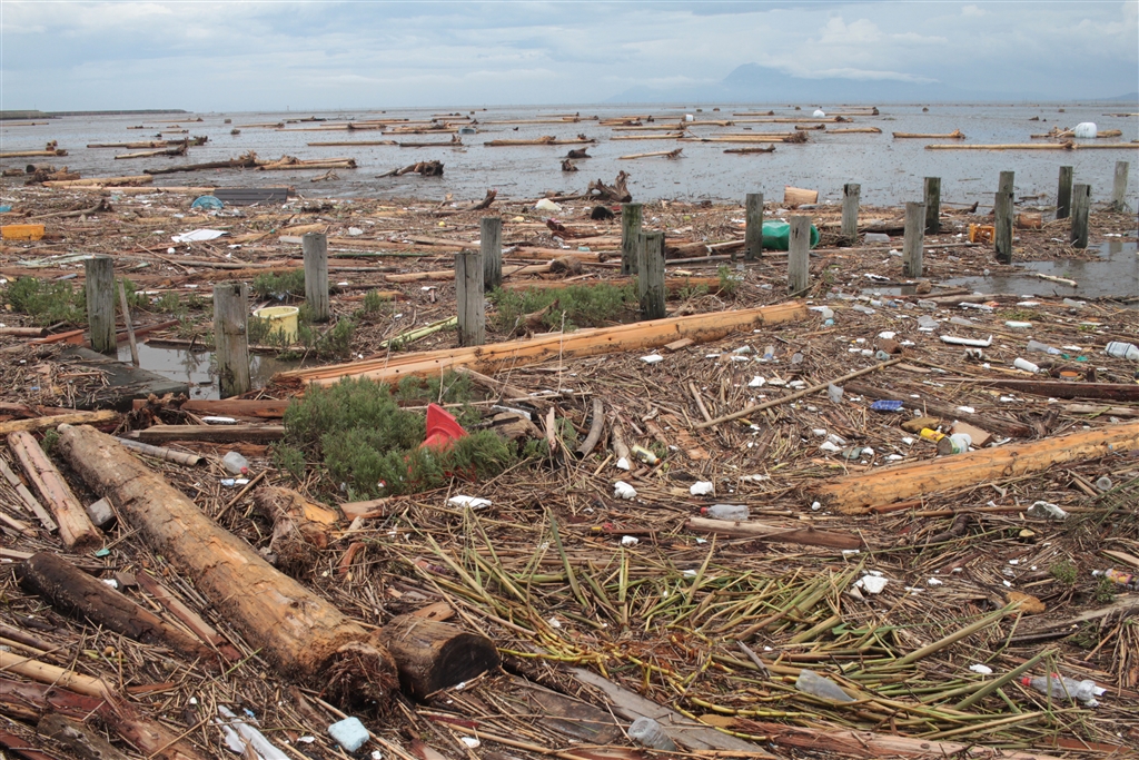 海に流木流れました