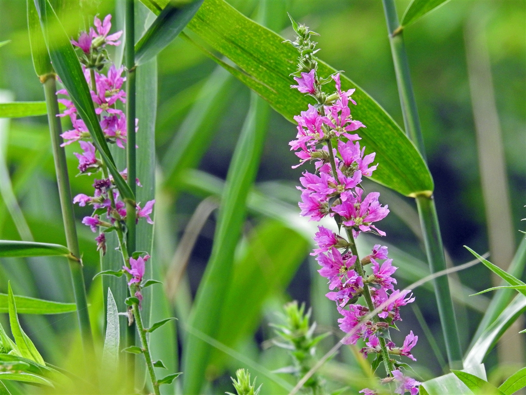 ミソハギ(禊萩) 穂を真っ直ぐ伸ばし赤紫色の花を下から上へ咲き上る。湿地沼地に自生