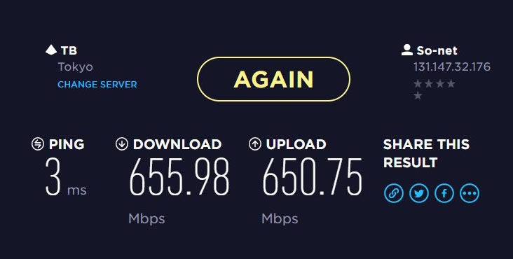 もうちょっと速いけど1Gbpsは無理っぽい…