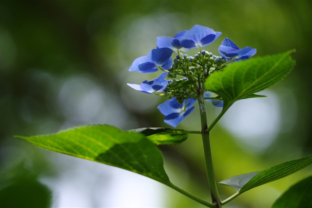 崖上のアジサイを見上げて