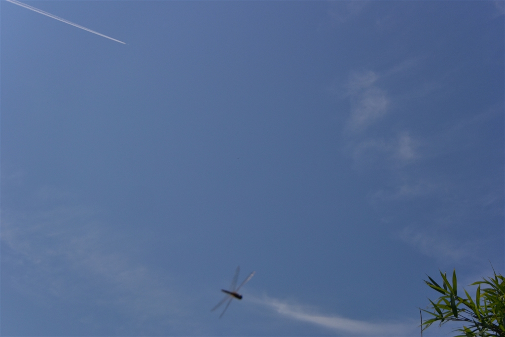 飛行機雲の先端にトンボを入れたかった・・・カメラワークでちょんぼの失敗作(^_^)