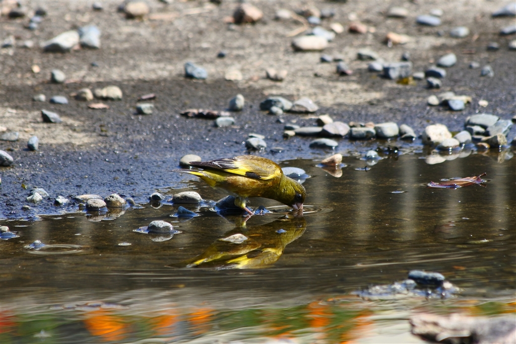 ・水を飲みにきたカワラヒワ