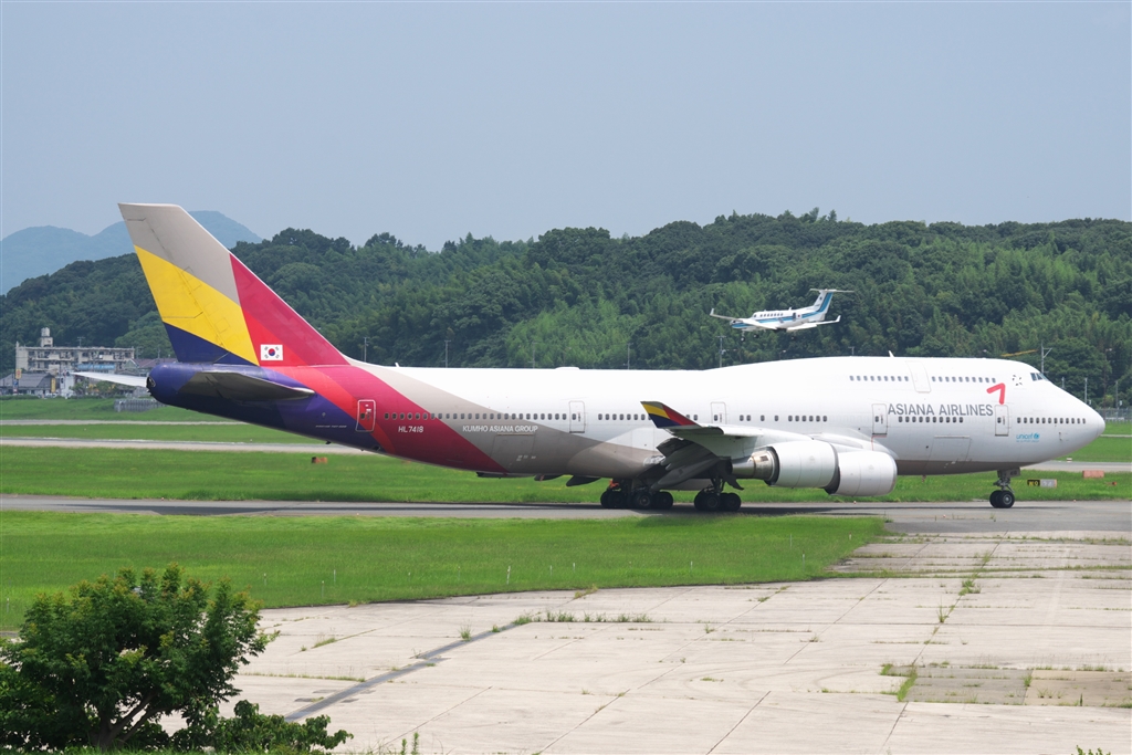 離陸待機中のアシアナ航空747-400