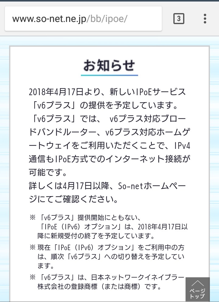 So-net「v6プラス」正式対応予定の告知