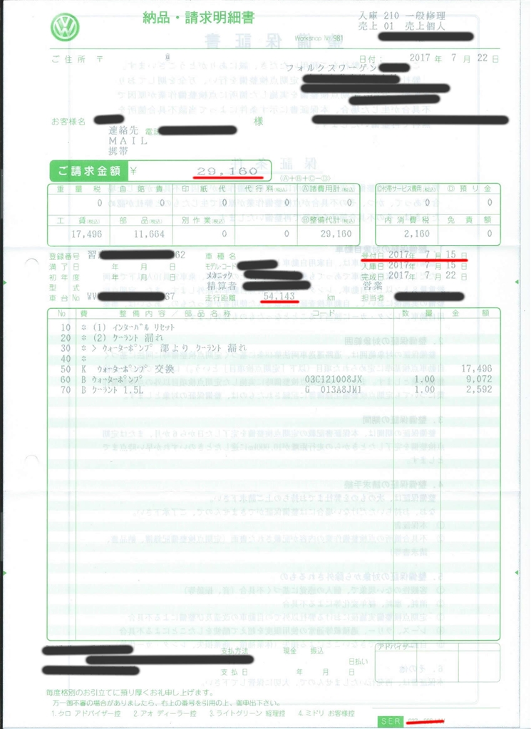 冷却水漏れ