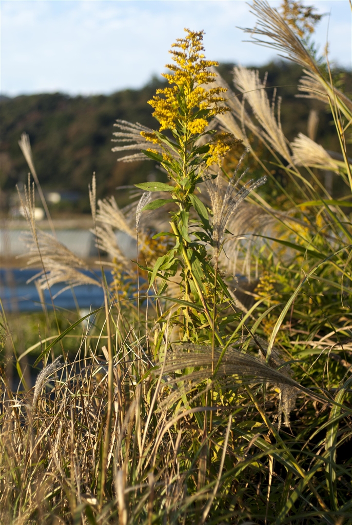 セイタカアワダチソウと足元の雑草