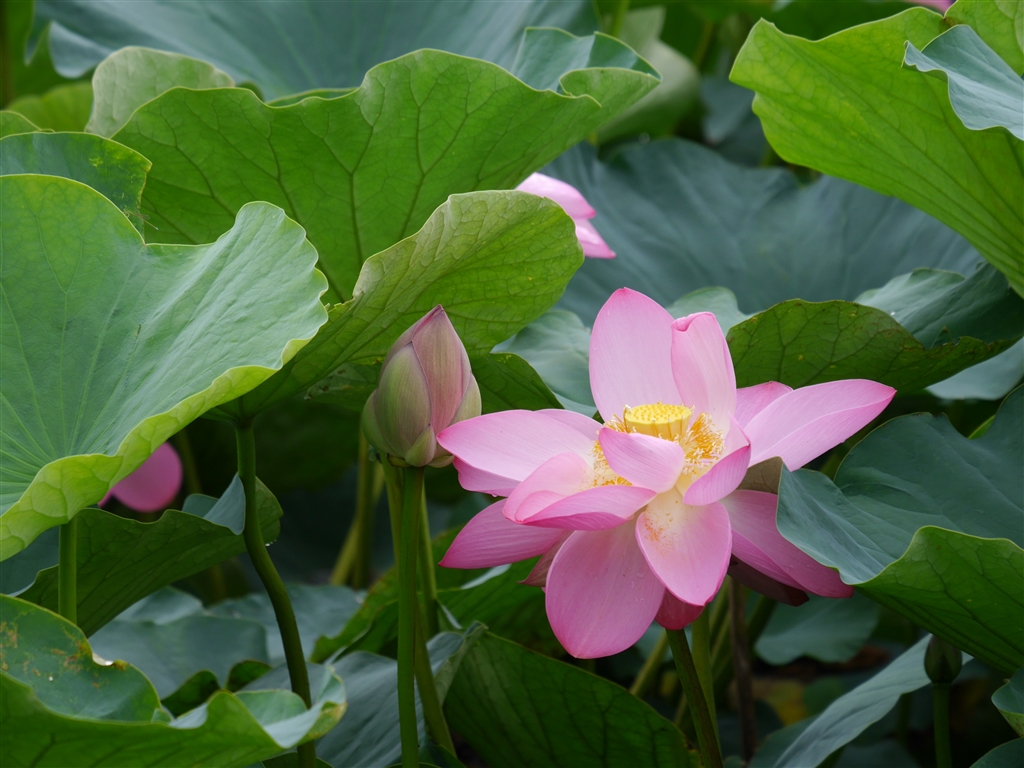 大篠原溜池に咲く蓮…昼前になるとかなり開き気味です。