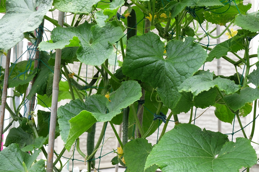 キュウリ地味に記録伸ばしてます(2株で合計71本)