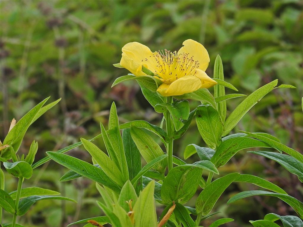 トモエソウ(巴草) オトギリソウの仲間で茎頂に黄色の5弁花が巴型に咲く1日花
