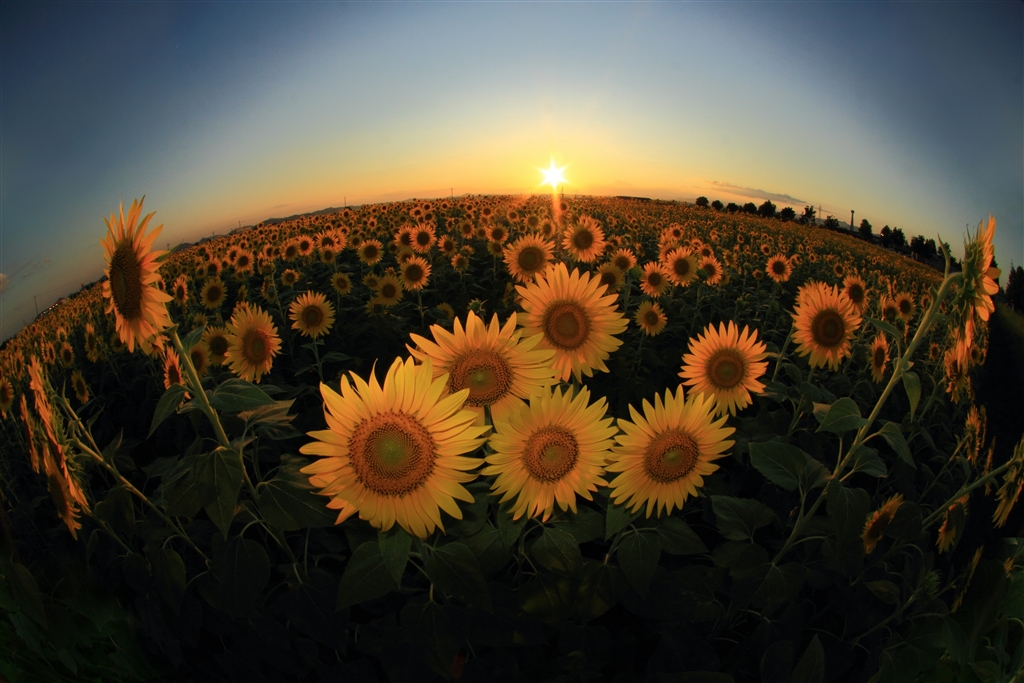 そうこうしているうちに太陽は沈みかけて夕暮れのヒマワリもいい!!