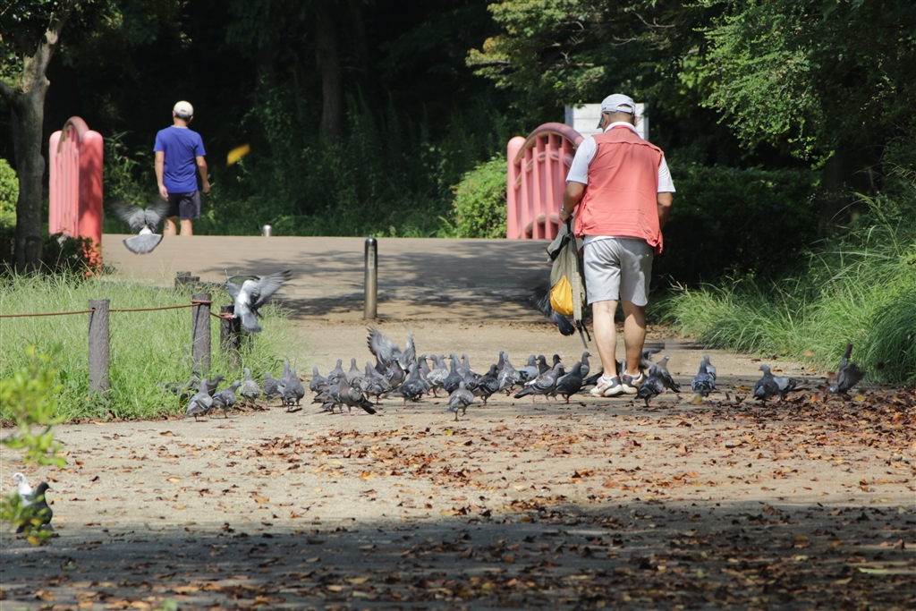 ハトおじさん。餌をまいてました。