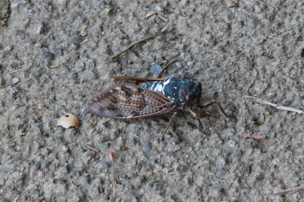 アブラゼミさん。まだ羽が白いです。(若干トリミング加工)