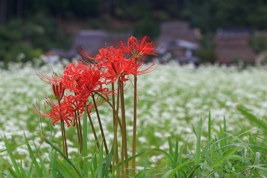 曼珠沙華をクローズアップしてバックをぼかす