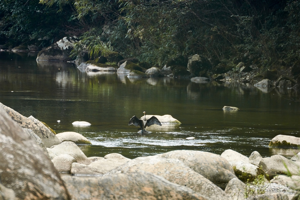山間の渓谷の、遥か彼方で見つけたカワウ達