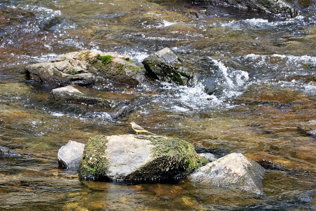 山間の渓谷の、遥か彼方で見つけたキセキレイ