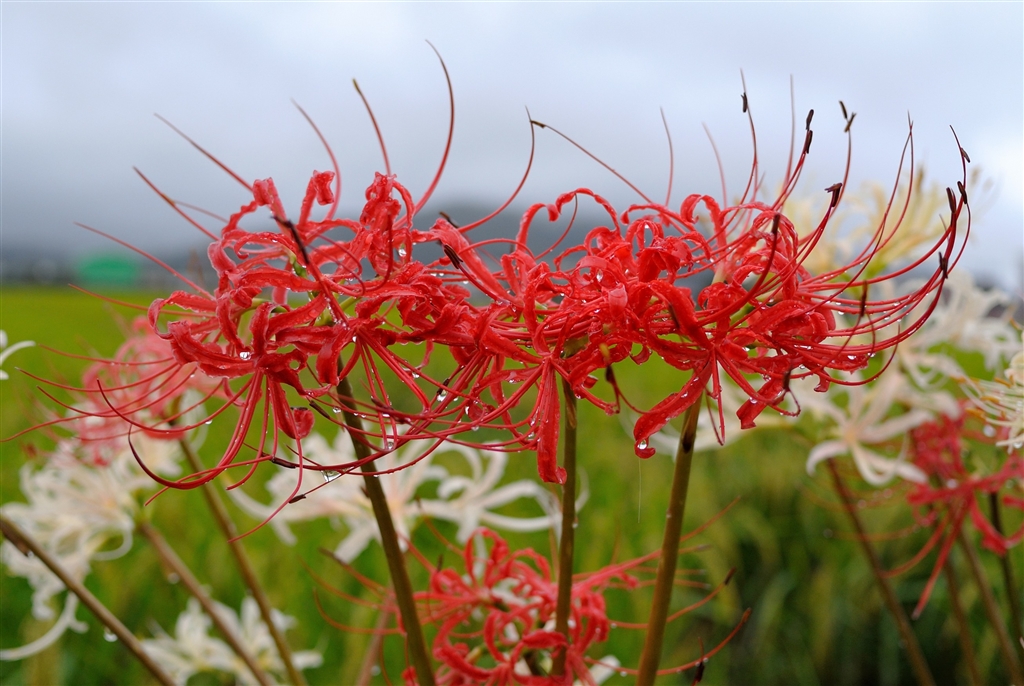早朝雨天時の曼珠沙華 紅白
