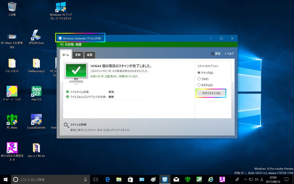 『Windows 10 Windows Defender』 セキュリティソフトすべて ヒエルさんのクチコミ掲示板画像1/2