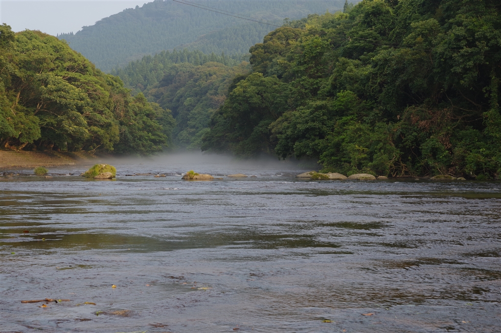 夏なのに川霧発生。しかも夕方・・・
