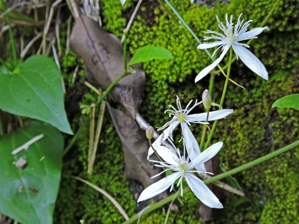 センニンソウ(仙人草) 全草有毒。白い十字形花弁は萼片。結実時に白長の髭=仙人髭