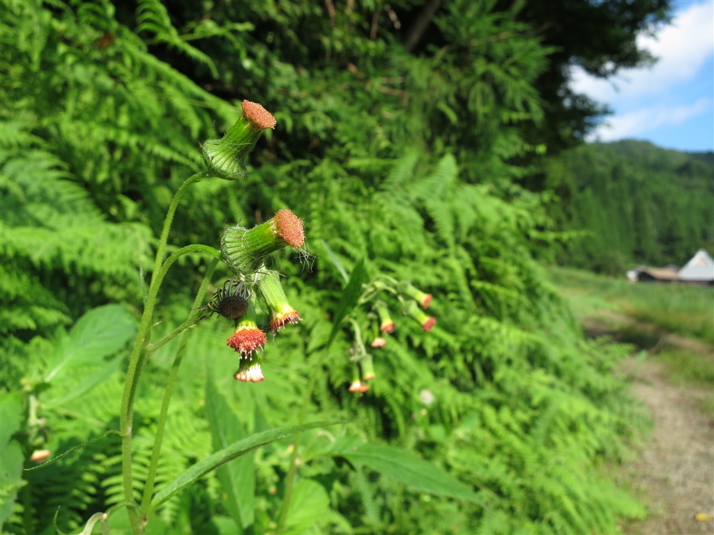 麓に沢山咲くベニバナボロギク。