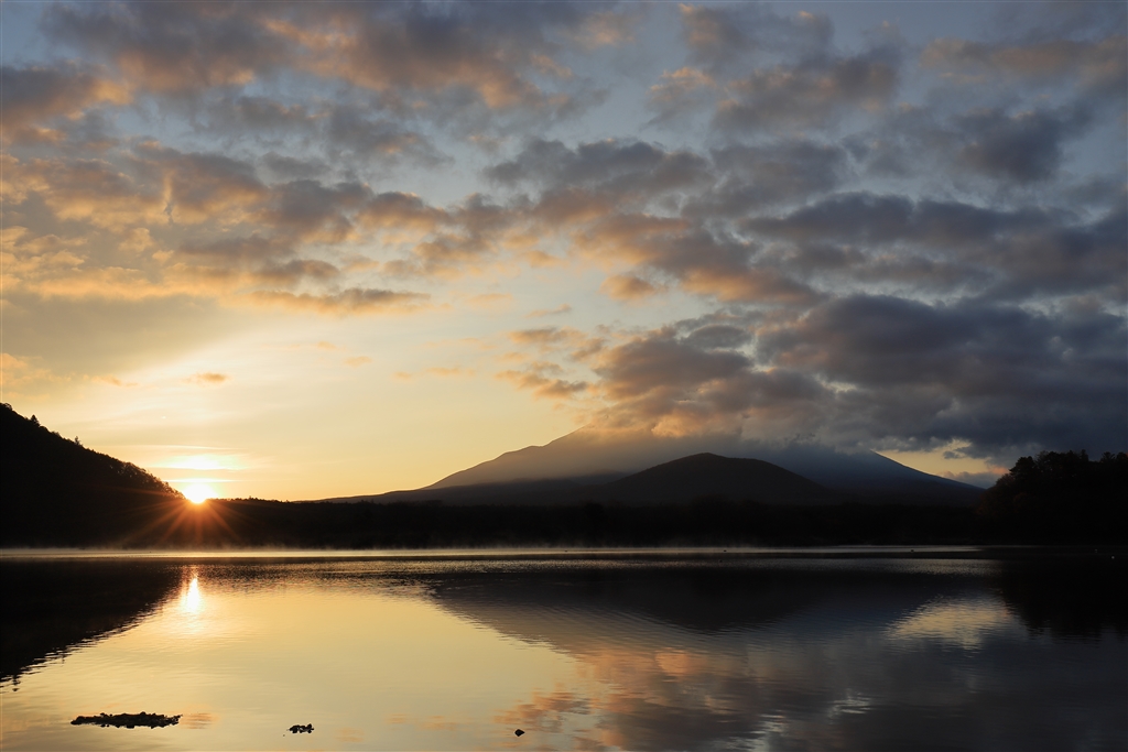 精進湖での日の出 肝心の富士山には雲が・・・