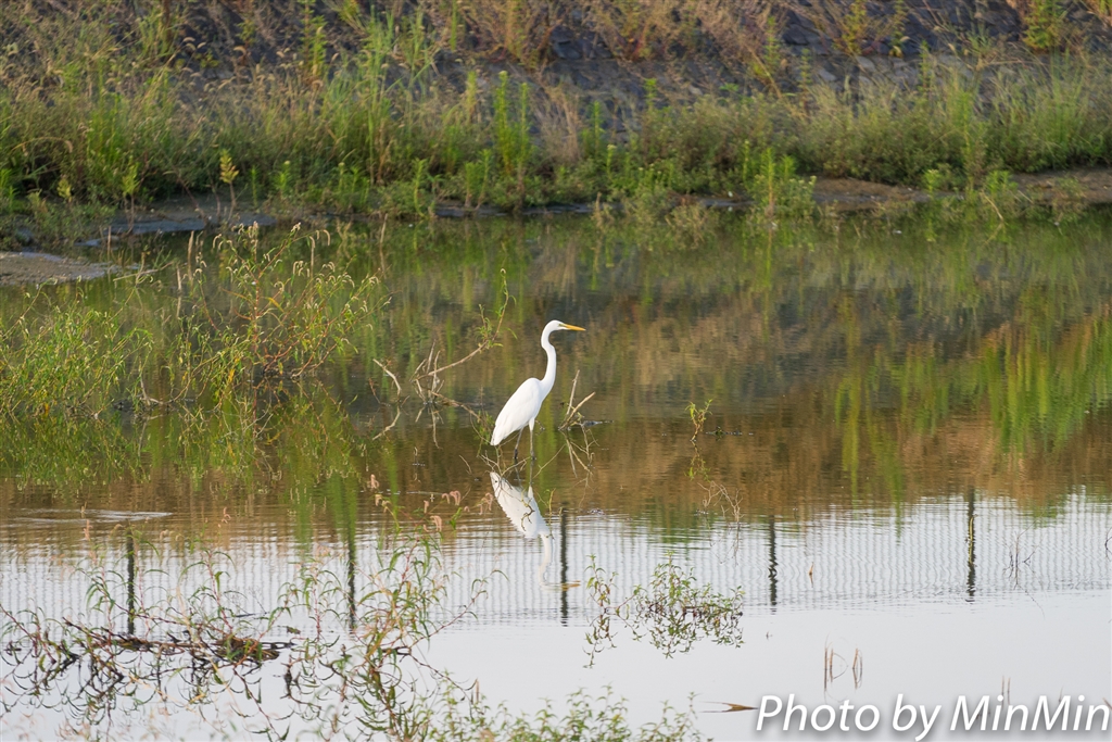 藤原京跡近くのため池から ”ダイサギ飛ぶ”