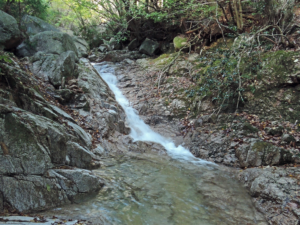 仙ヶ谷の無名瀑布 この滝を越え、上流へ進んでいくと、ほどなく仙鶏尾根の取付き点