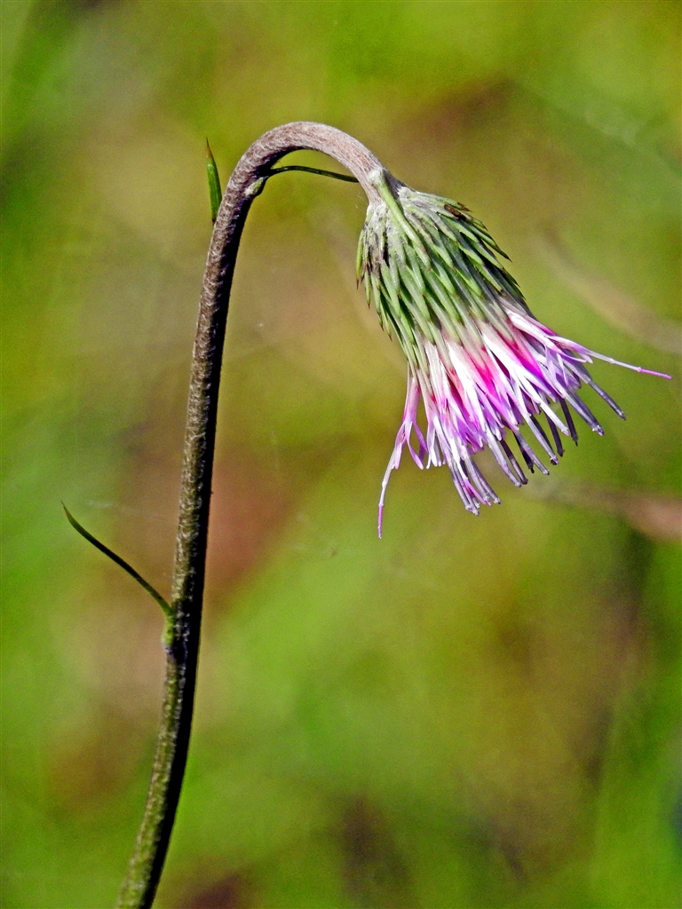キセルアザミ 秋に湿地で大きな頭花を下向きに咲かせる日本固有種。本州と四国に分布