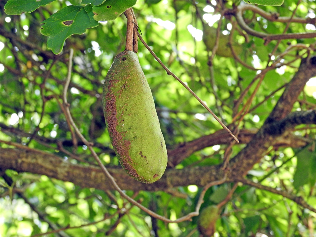 ご存知アケビの実。まだ食べるには早い。