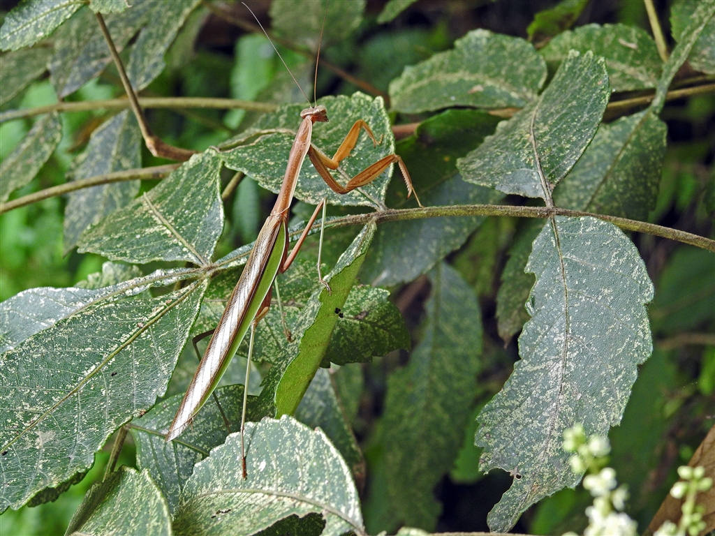 くる禁 ヌルデの木の葉にオオカマキリ♂