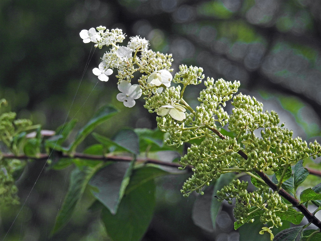 こちらのノリウツギはまだ白いままなので若い。先端の両性花も咲いていた。