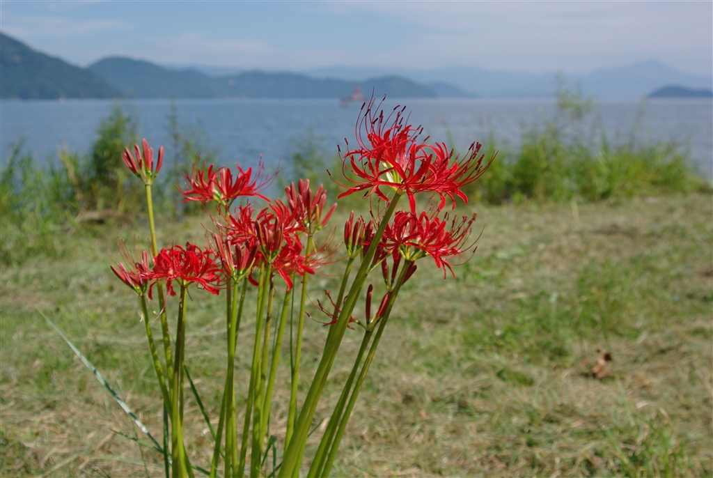 彼岸花と琵琶湖…撮影地はカメラを持った方が沢山の群落地でした。