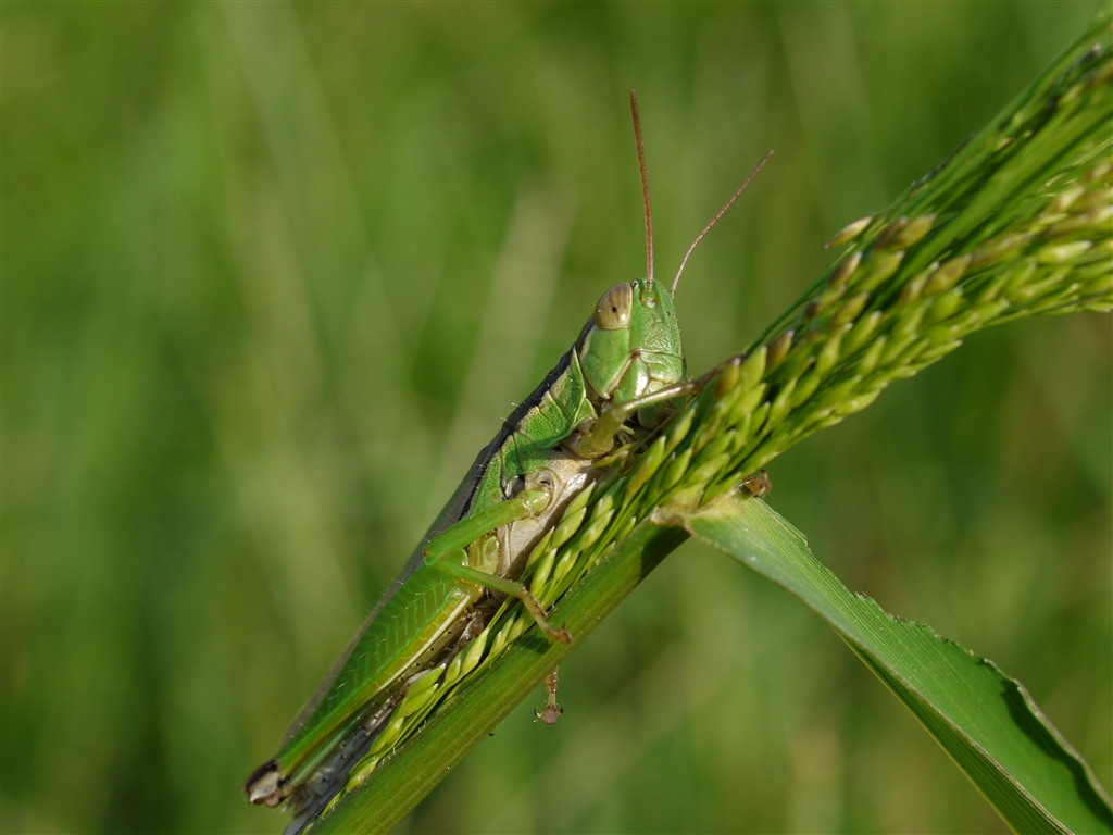 くる禁…雑草にしがみ付くバッタ。