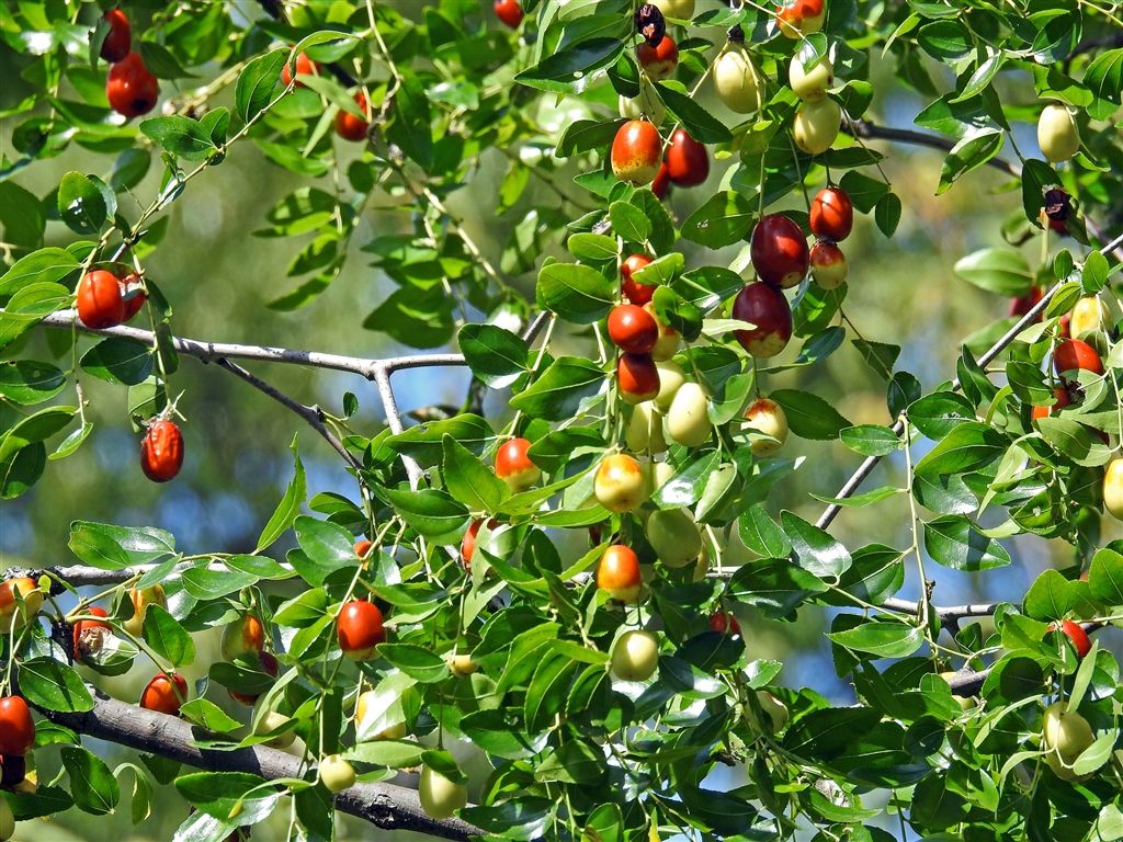 ナツメの実 西アジア原産。古代に日本渡来。赤褐色になると生食可。乾燥させ菓子材料