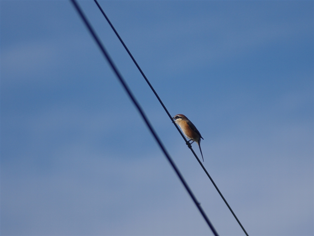 電線かぶりで焦点距離不足のモズ