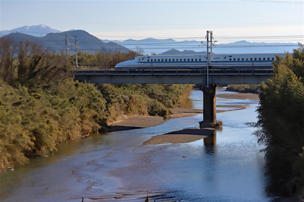 新幹線のバックに鈴鹿山系の積雪。。撮れなかった