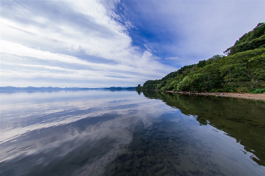 空も湖面も秋の雲