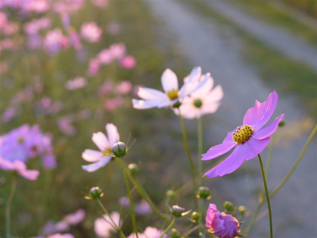 農道脇に咲くコスモス。