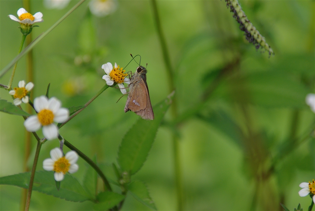 シロノセンダングサとイチモンジセセリ。